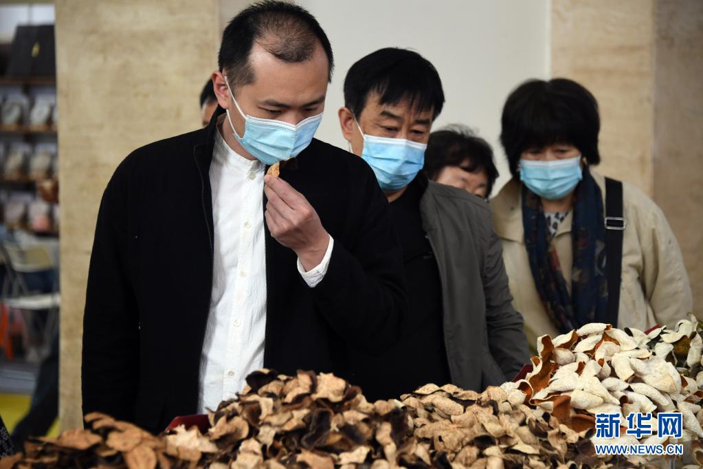 李卓澄在第十三屆中國(北京)國際茶業及茶藝博覽會中了解展出的陳皮(4月23日攝)。新華社記者 任超 攝