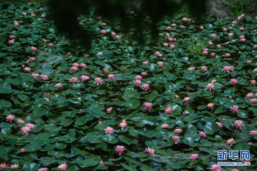在東林鎮東方村,水田里種植的睡蓮盛開(5月7日攝)。