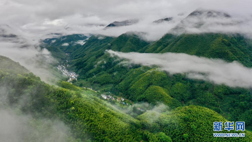 5月17日,武夷山國(guó)家公園桐木村附近群山云霧繚繞(無(wú)人機(jī)照片)。
