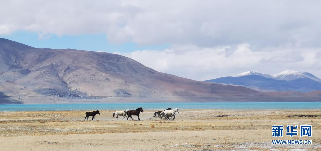 野馬在佩枯錯旁奔馳(5月14日攝,手機照片)。