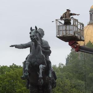 圣彼得堡:清潔“青銅騎士” 慶祝建城318周年