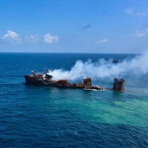 6月2日,斯里蘭卡總統戈塔巴雅下令將起火貨船“X-PRESS PEARL”號拖向遠離科倫坡港的深海區,以防引發更大的環境災難。“X-PRESS PEARL”號貨船5月20日抵達科倫坡港西北約9.5海里錨地時發出火警求救信號。斯里蘭卡海洋環境保護局官員5月28日表示,在科倫坡港附近起火燃燒的“X-PRESS PEARL”號貨船預計將會引發嚴重環境災難。新華社發(斯里蘭卡空軍媒體處供圖)