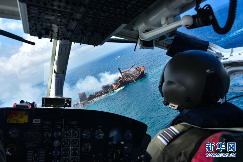 6月2日,斯里蘭卡總統(tǒng)戈塔巴雅下令將起火貨船“X-PRESS PEARL”號拖向遠離科倫坡港的深海區(qū),以防引發(fā)更大的環(huán)境災(zāi)難?!癤-PRESS PEARL”號貨船5月20日抵達科倫坡港西北約9.5海里錨地時發(fā)出火警求救信號。斯里蘭卡海洋環(huán)境保護局官員5月28日表示,在科倫坡港附近起火燃燒的“X-PRESS PEARL”號貨船預(yù)計將會引發(fā)嚴重環(huán)境災(zāi)難。新華社發(fā)(斯里蘭卡空軍媒體處供圖)