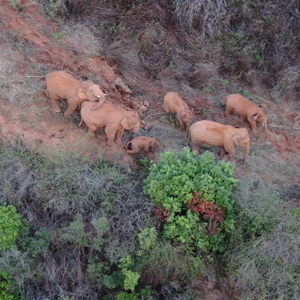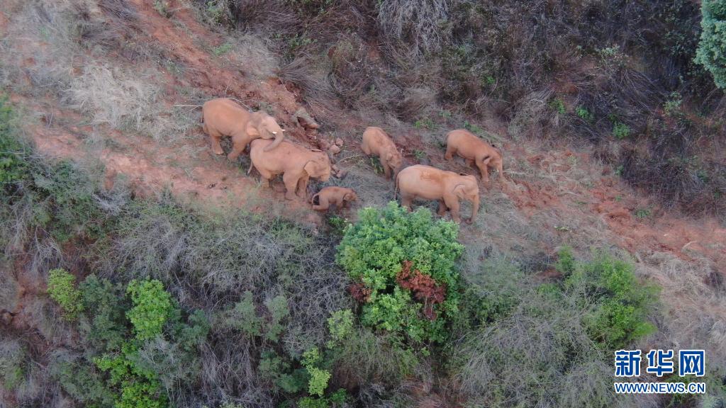 6月15日在玉溪市易門縣十街鄉拍攝的象群(無人機照片)。新華社發(云南省森林消防總隊供圖)