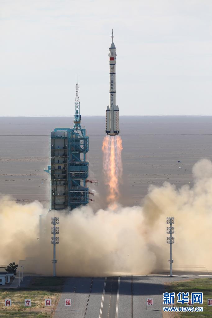 6月17日,搭載著神舟十二號載人飛船的長征二號F遙十二運載火箭在酒泉衛星發射中心點火升空。新華社記者 李剛 攝