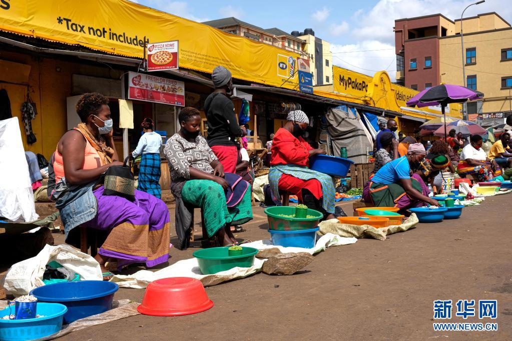 6月23日,商販們在烏干達坎帕拉的納卡塞羅市場販賣商品。