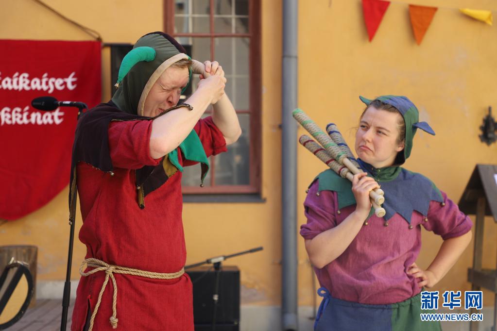 芬蘭古城圖爾庫于7月1日至4日舉行“中世紀市集”活動。人們身著中世紀風格服裝售賣貨品,表演短劇、馬戲和歌舞。