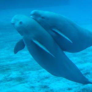 在中國科學院水生生物研究所白鱀豚館里,生活著一對江豚母子——母豚洋洋和小江豚YYC。