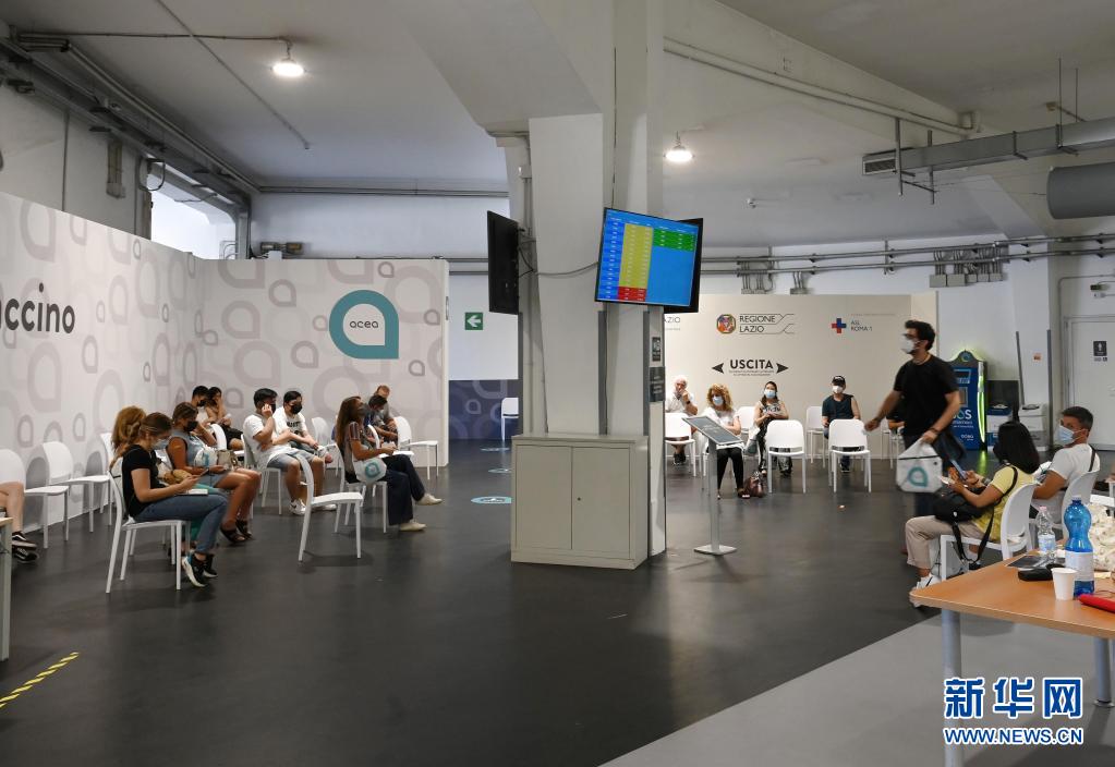7月6日,在意大利羅馬一處新冠疫苗接種點,人們接種新冠疫苗后留觀。