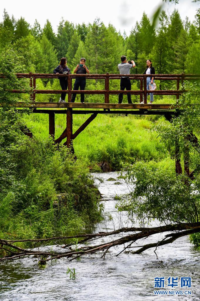 夏日時節,內蒙古興安盟阿爾山市的阿爾山國家森林公園內樹木郁郁蔥蔥,景色宜人。