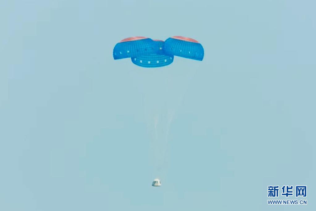 這張美國藍(lán)色起源公司7月20日發(fā)布的視頻截圖顯示“新謝潑德”飛行器在美國得克薩斯州西部降落。