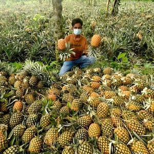 7月25日,農(nóng)民在孟加拉國坦蓋爾運(yùn)輸收獲的菠蘿。
