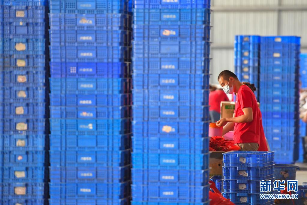 8月1日,在位于長沙市望城區的湖南高星物流園,蔬菜倉庫的工作人員將蔬菜裝筐。