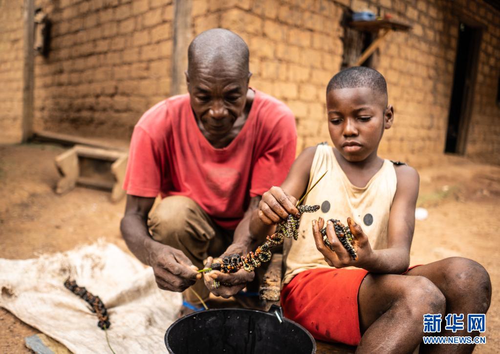 對(duì)于生活在糧食匱乏狀況下的居民,蟲子不僅意味著食物可以果腹,也是財(cái)富的來源。在雨季,來自首都班吉的經(jīng)銷商每天都騎著摩托車來到當(dāng)?shù)兀召彯?dāng)?shù)鼐用褡淼拿x,然后賣到首都消費(fèi)者手里。