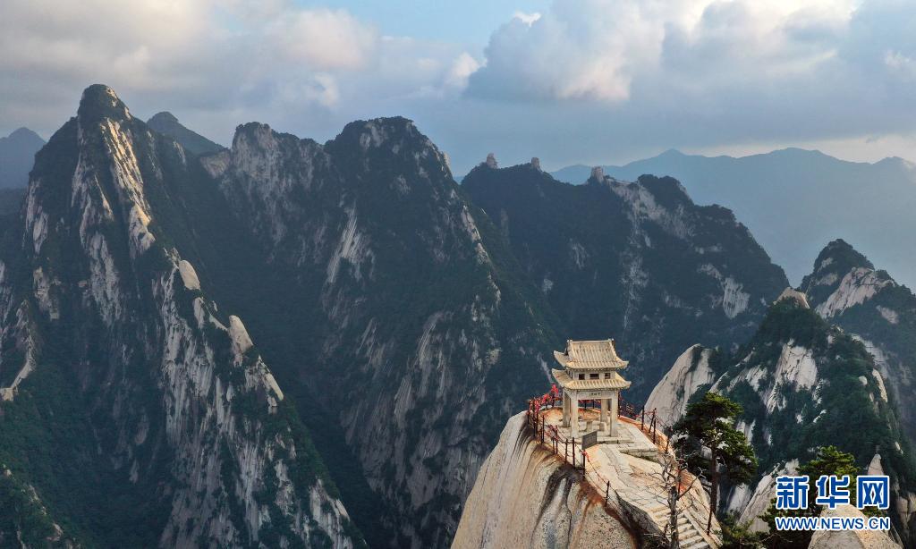 8月14日,西岳華山東峰下棋亭風光(無人機照片)。