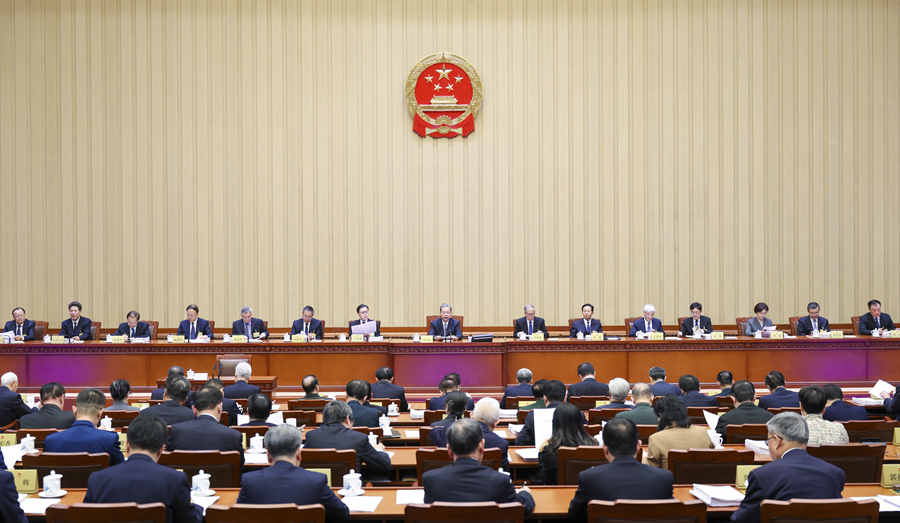 10月24日上午,十四届全国人大常委会第十八次会议在北京人民大会堂举行第一次全体会议。赵乐际委员长主持。