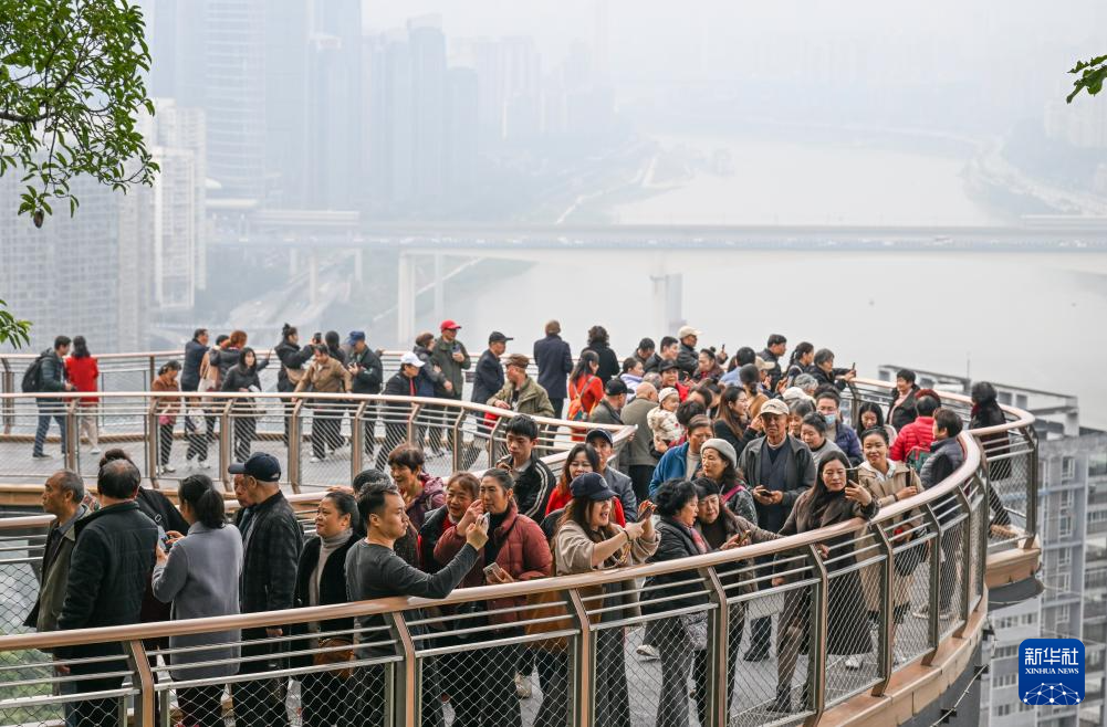 11月24日,人们在重庆半山崖线鹅岭栈桥观光、拍照。
