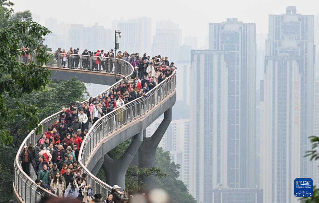 11月24日,人们在重庆半山崖线鹅岭栈桥观光。