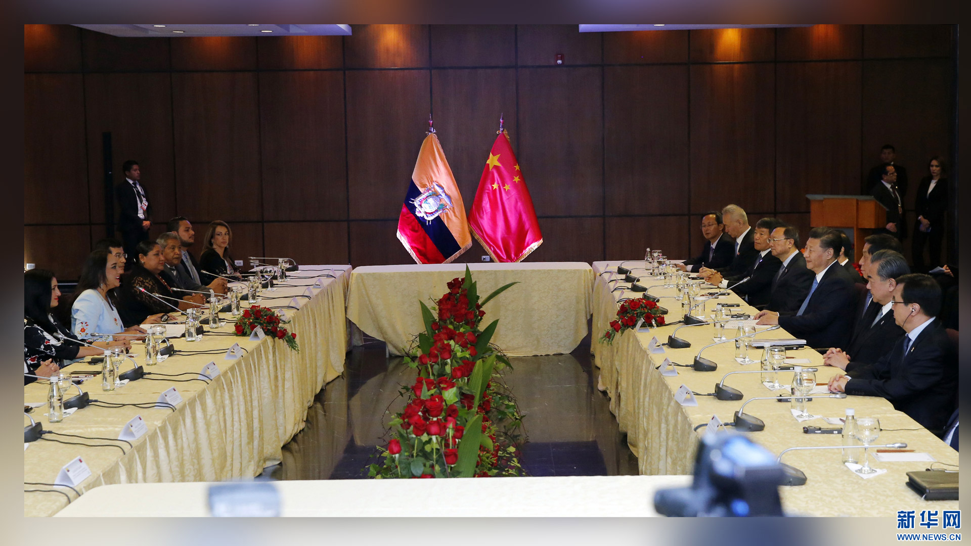 當地時間11月18日,國家主席習近平在基多同厄瓜多爾總統科雷亞共同出席中方援建的厄瓜多爾公共安全應急指揮中心聯合實驗室揭牌儀式,喬內醫院奠基、科卡科多-辛克雷水電站竣工發電視頻連線活動。這是習近平出席活動后致辭。新華社記者 馬占成 攝2016-11-19