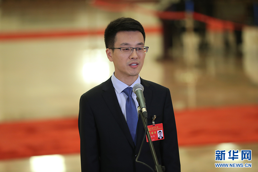 10月19日,“黨代表通道”第二場(chǎng)采訪活動(dòng)在人民大會(huì)堂舉行。圖為徐川代表接受采訪。新華網(wǎng) 翟子赫 攝?