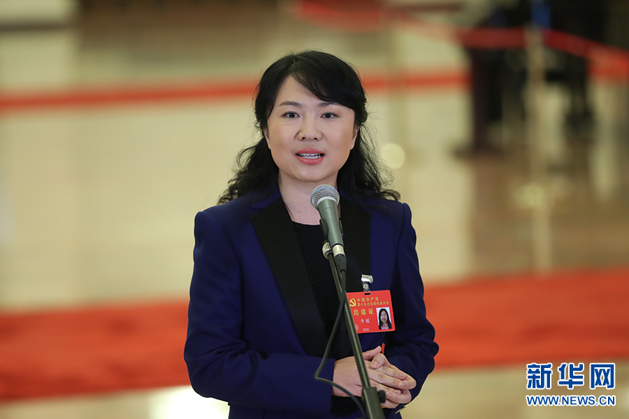 10月19日,“黨代表通道”第二場采訪活動在人民大會堂舉行。圖為李媛代表接受采訪。新華網 翟子赫 攝