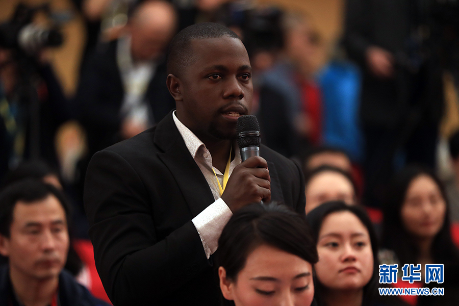 ??? 10月19日,十九大新聞中心舉辦集體采訪,邀請政法戰(zhàn)線代表談全面推進(jìn)依法治國。圖為烏干達(dá)New Vision報紙記者提問。新華網(wǎng) 郝廣鵬攝