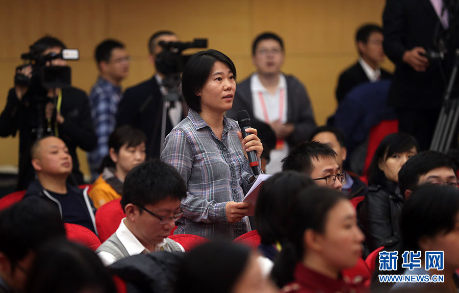 ??? 10月20日,十九大新聞中心舉辦集體采訪活動,主題為“實施創新驅動發展戰略”。圖為中國海洋報記者提問。新華網 郝廣鵬攝