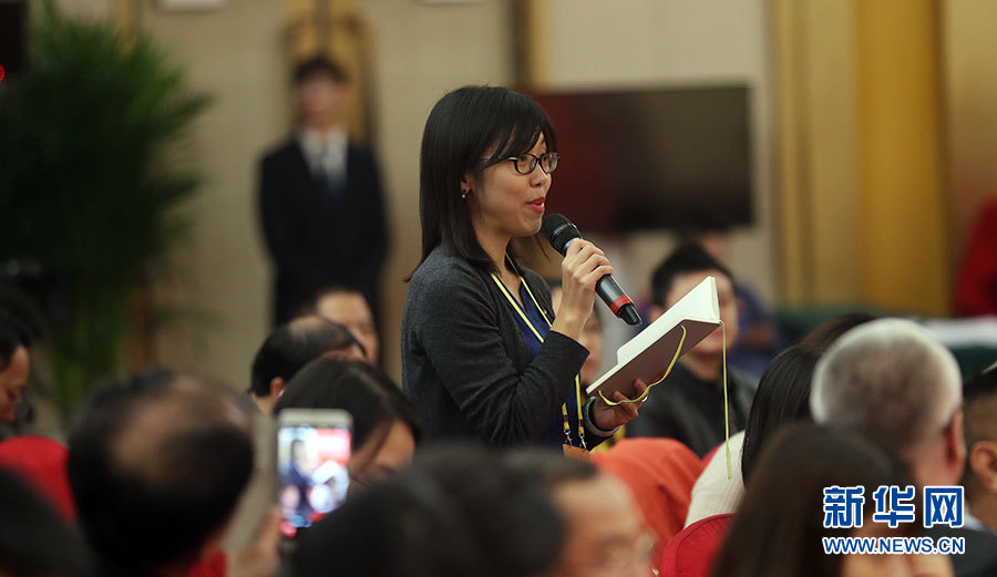 ??? 10月20日,十九大新聞中心舉辦集體采訪活動,主題為“實施創新驅動發展戰略”。圖為中國日報記者提問。新華網 郝廣鵬攝