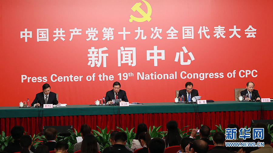 ??? 10月21日,十九大新聞中心舉辦記者招待會,邀請國家發展改革委黨組書記、主任何立峰,副主任張勇,副主任寧吉喆介紹以新發展理念為引領,推進中國經濟平穩健康可持續發展有關情況,并回答記者提問。圖為記者招待會現場。新華網 郝廣鵬攝