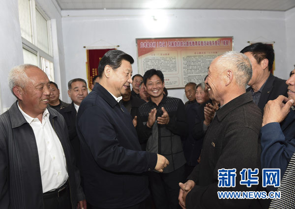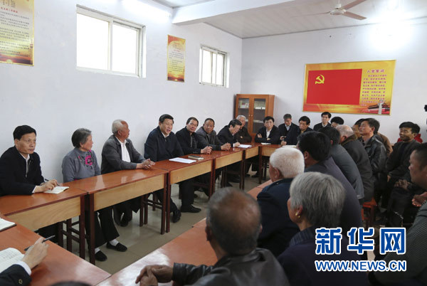 ??? 3月17日,習近平在東壩頭鄉張莊村村委會與干部群眾座談,聽取意見和建議。 新華社記者李學仁攝