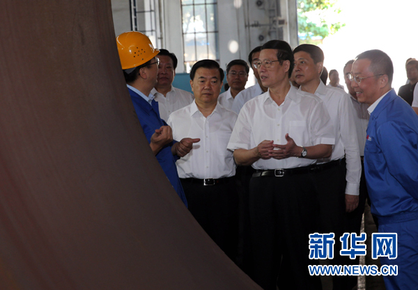 ??? 這是7月4日,張高麗來到甘肅蘭州蘭石集團(tuán)有限公司車間考察企業(yè)的生產(chǎn)經(jīng)營(yíng)情況。 新華社記者劉衛(wèi)兵攝