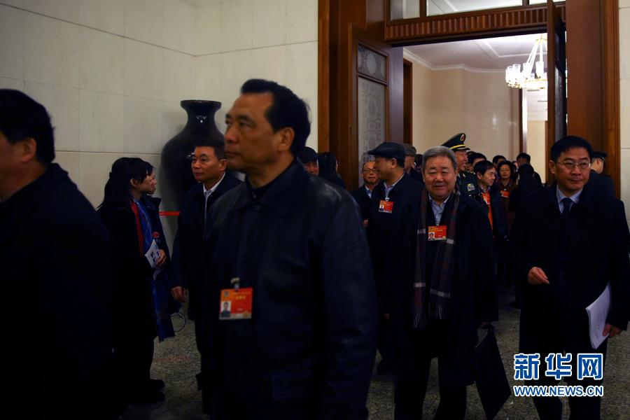 列席十二屆全國人大三次會議開幕會的全國政協委員步入會場