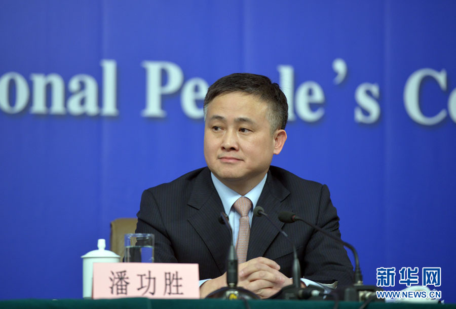 ????十二屆全國人大三次會議新聞中心于3月12日在梅地亞中心多功能廳舉行記者會,邀請中國人民銀行行長周小川,中國人民銀行副行長、國家外匯管理局局長易綱,中國人民銀行副行長潘功勝,絲路基金有限責任公司董事長金琦就金融改革與發展回答中外記者提問。圖為中國人民銀行副行長潘功勝回答記者提問。新華網/中國政府網 郭小天 攝