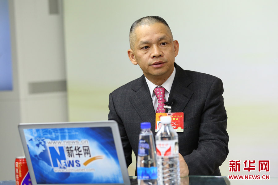 2015年3月13日,全國人大代表、湖南科力遠新能源股份有限公司董事長鐘發平做客新華會客廳。圖為訪談現場。新華網 李江 攝