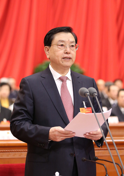 3月15日,第十二屆全國人民代表大會第三次會議在北京人民大會堂舉行閉幕會。張德江主持閉幕會并講話。 新華社記者 蘭紅光 攝