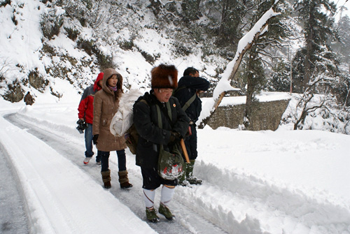 大雪封山,江德華徒步和同事們去辦案。 資料圖