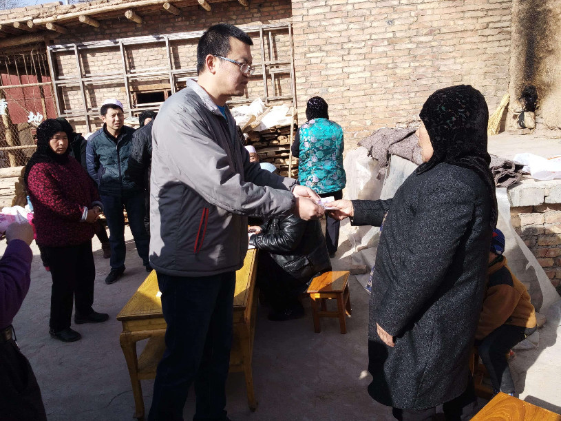 包毅為貧困戶發放慰問金,宣傳精準扶貧政策
