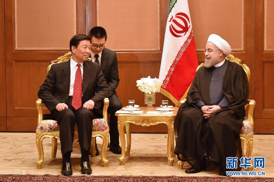 ??? 10月9日,伊朗總統魯哈尼(右)在泰國曼谷會見前來出席亞洲合作對話第二次領導人會議的中國國家副主席李源潮。 新華社記者李芒茫攝