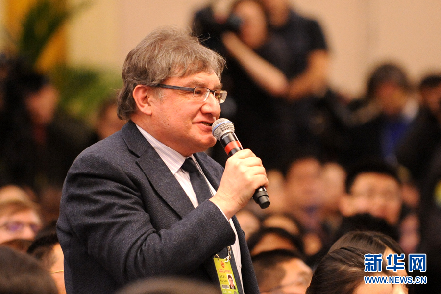 十二屆全國人大四次會議新聞中心于3月8日(星期二)10時在梅地亞中心多功能廳舉行記者會,邀請外交部部長王毅就“中國的外交政策和對外關系”的相關問題回答中外記者的提問。圖為俄通社塔斯社記者提問。新華網/中國政府網記者 陳杰 攝