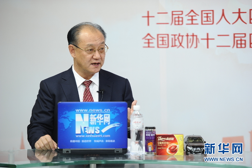 2016年3月13日,全國政協委員,中國中醫科學院廣安門醫院院長王階做客新華網兩會訪談直播間。圖為王階在訪談現場。新華網 盧志佳 攝