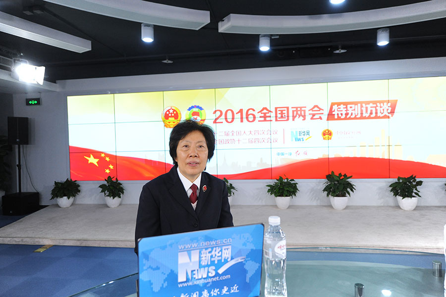 2016年3月14日,最高人民檢察院黨組副書記、常務副檢察長胡澤君做客新華網兩會訪談直播間。圖為胡澤君在訪談現場。新華網 賈振 攝