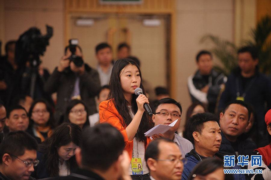 十二屆全國人大四次會議新聞中心于3月15日(星期二)10時在梅地亞中心多功能廳舉行記者會,邀請住房和城鄉建設部部長陳政高、副部長陸克華、副部長倪虹就“棚戶區改造和房地產工作”的相關問題回答中外記者的提問。圖為香港中評社記者提問。新華網/中國政府網 陳杰 攝