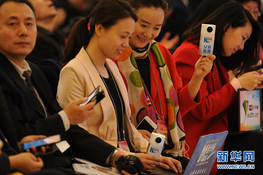 新華網(wǎng)記者用VR報道總理記者會現(xiàn)場