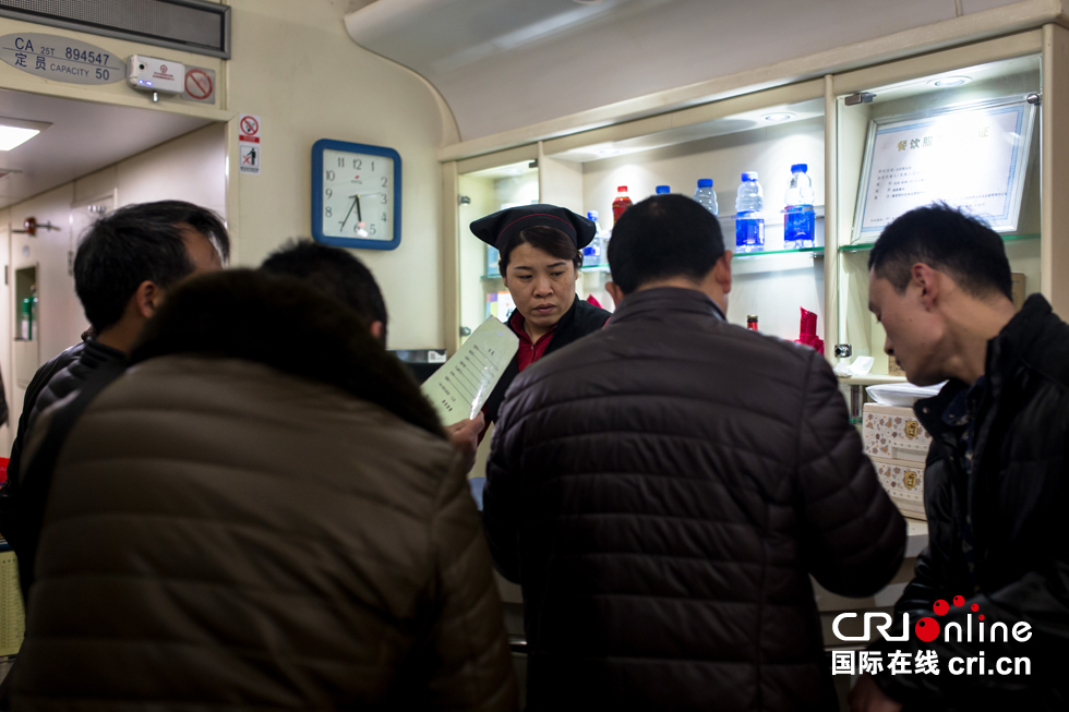 等列車(chē)行駛一段時(shí)間后,陸續(xù)有旅客來(lái)到餐車(chē)點(diǎn)餐。