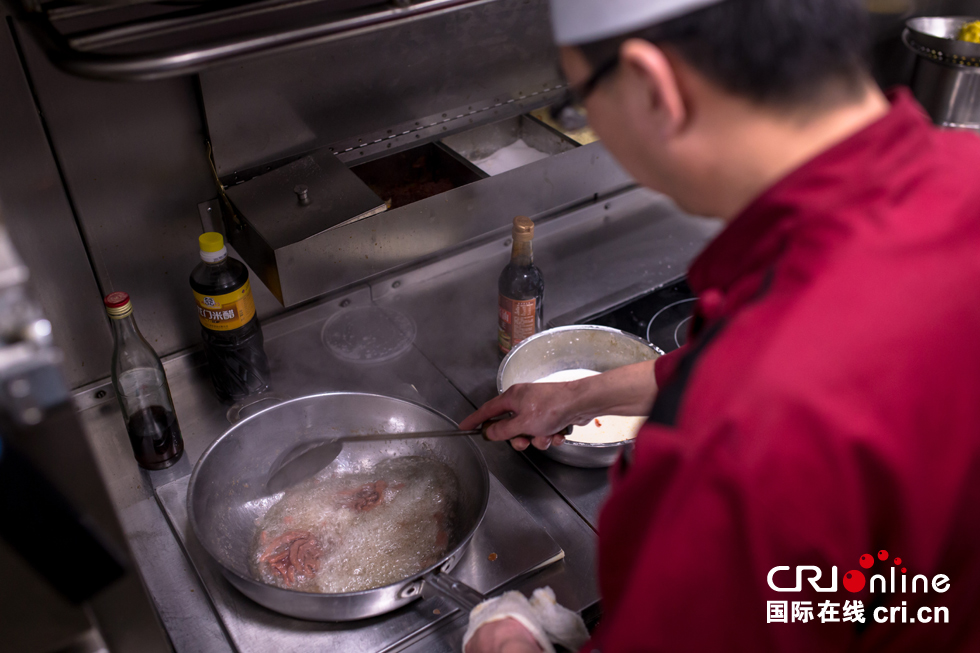 “5份杭椒牛柳套餐,哥幾個都忙起來啊,牛柳可以多滑點。”白師傅招呼著廚房里的兩個老搭檔。杭椒牛柳是這趟車點單率比較高的套餐之一。