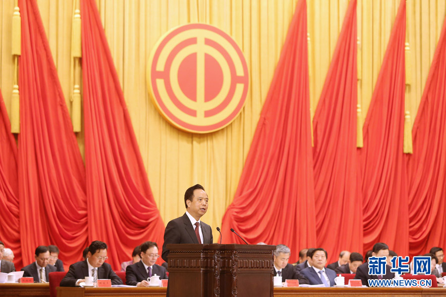 4月27日,慶?!拔逡弧眹H勞動節暨全國五一勞動獎和全國工人先鋒號表彰大會在北京人民大會堂舉行。中共中央政治局委員、中華全國總工會主席李建國出席大會并講話。新華社記者 才揚 攝