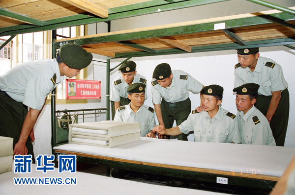 戰士們在李向群的床鋪前重溫英雄的故事(資料圖片)。新華社發