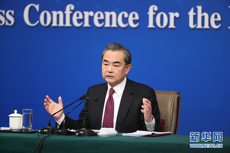 十二屆全國人大五次會(huì)議新聞中心于3月8日(星期三)10時(shí)在梅地亞中心多功能廳舉行記者會(huì),邀請(qǐng)外交部部長王毅就“中國的外交政策和對(duì)外關(guān)系”的相關(guān)問題回答中外記者的提問。圖為外交部部長王毅回答現(xiàn)場記者提問。新華網(wǎng)/中國政府網(wǎng) 翟子赫 攝