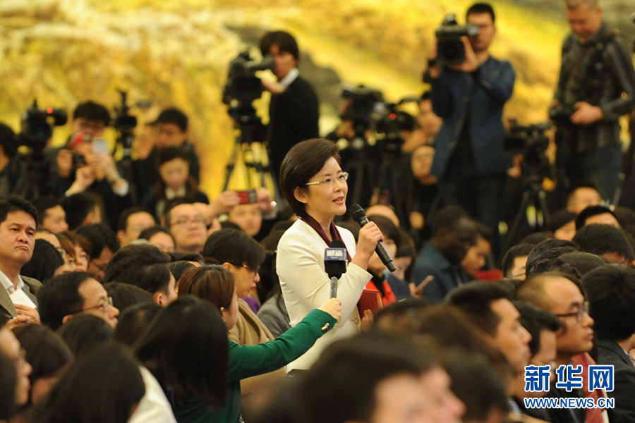 3月15日上午,國(guó)務(wù)院總理李克強(qiáng)在人民大會(huì)堂三樓金色大廳會(huì)見采訪十二屆全國(guó)人大五次會(huì)議的中外記者并回答記者提出的問題。圖為中央電視臺(tái)記者提問。新華網(wǎng)/中國(guó)政府網(wǎng) 翟子赫 攝?