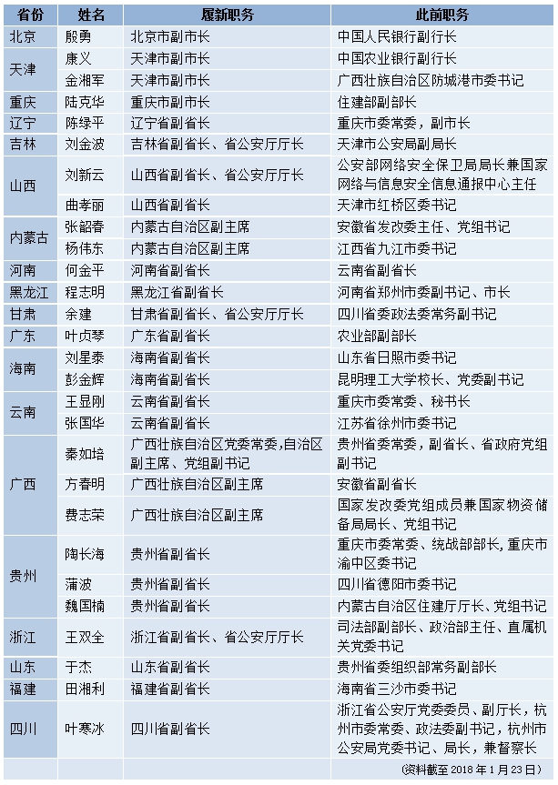 新華人事記者統(tǒng)計,1月19日至23日,北京、天津、內(nèi)蒙古、遼寧等十九省區(qū)市28位省級政府副職履新,呈現(xiàn)多層次交流態(tài)勢。